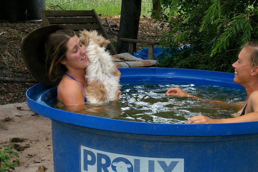 Die beste Zeit war aber das Mustering. Es waren lange Tage, aber ich hatte viel Spaß. Mein erstes großes Mustering bestand aus 13 1/2 Std. im Sattel, gefolgt von zwei 12 Std. Tagen in den Yards; Kühe impfen und gegen Parasiten behandeln, Kälber kastrieren, brandmarken, „dehornen“ und, und, und. Gerade das „Processing“ in den Yards ist für Menschen mit eher zartem Gemüt anfangs vielleicht etwas heftig. Ich denke aber, dass man sich daran gewöhnen kann.